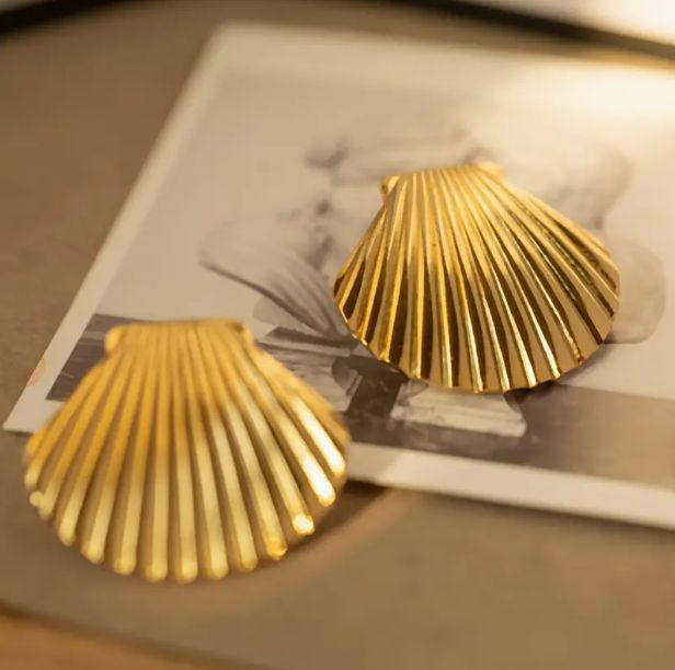Arete Concha Acero Inoxidable color Oro