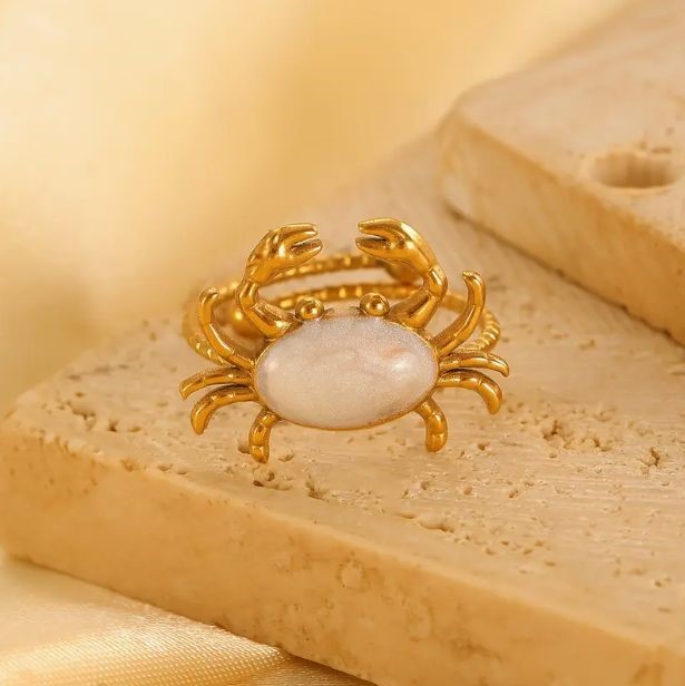 Anillo Cangrejo Blanco Ajustable de Acero Inoxidable